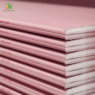 แผ่นยิปซั่มทนไฟ:ลักษณะเป็นสีชมพู ผลิตจากยิปซั่มก่อสร้าง วัสดุน้ำหนักเบา เส้นใยอนินทรีย์ทนไฟ และสารเติมแต่ง นำเสนอประสิทธิภาพการกันไฟที่แข็งแกร่งสำหรับฉากกั้นและเพดาน
